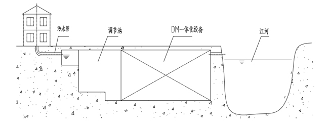 DM 型污水处理设备主要用于生活污水和与之类似的工业有机废水的处理,其主要处理方法是采用目前较为成熟的生化处理技术-生物接触氧化法,水质设计参数按一般生活污水水质设计计算,按 BOD5 平均200mg/l,出水 BOD5 按 20mg/l 设计。